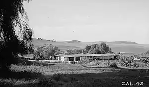 Northwestern view of Rancho Guajome landscape and adobes (1936).