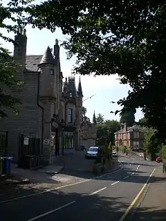 Significant in the area was the Ranfurly Hotel which was built in 1882 in the Scots Baronial style, designed by architect Robert Raeburn for the Bonar family of Ranfurly estate and an extension designed by James Miller.[3] It was closed as a hotel prior to the First World War and seen a number of uses since.[4]