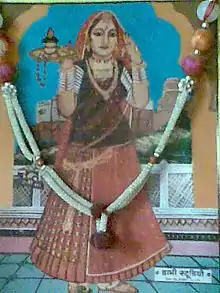 Rani Bhatiyani sa is a Hindu goddess, worshipped in Western Rajasthan, India, the region Kashmir, and Sindh, Pakistan .[1][2] Her major temples are in Jasol, Barmer District and JOGIDAS Jaisalmer (birthplace of majisa), where she is called Bhuwasa. She is especially venerated by the Merasi Manganiyar community of bards.[1] The women of the Dholi (singer) community sing the Ghoomar songs, in her honour, where she is praised as the princess of Jaisalmer.[3] The goddess is said to have given her first vision to a dholi. The goddess is also called Majisa (Mother) and songs are sung in her honour by bards.[4]