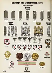 - ↑ "Reichsarbeitsdienst (RAD) 1940 Fatigue Dress enlisted chevrons". GermanDaggers.com. 2013. Retrieved 1 December 2018.