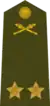 | Vrchní velitel branné moci | Armádní generál | Generálporučík | Generálmajor | Brigádní generál | Plukovník | Podplukovník | Major | Kapitán | Nadporučík | Poručík | Podporučík | |||||||||||||||||||||||||