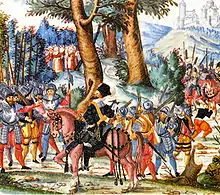 Andreas Ryff and the peasants beside Wildenstein Castle in May 1594