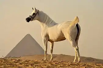 This cavalry unit almost certainly rode the legendary purebred Arabian horse, by fact the quality breeding of horses were held so dearly by the early caliphates who integrated traditions of Islam with their military practice.[4][5][6][7] These horses were also a common breed amongst the Arab community during the 6th to 7th century.[4]