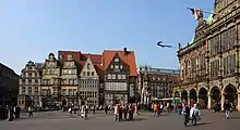 In 1973, the Rathscafé, today named Deutsches Haus, was designated a historic monument.[2] The building ensemble at the north side of the market place consists of four buildings, from right to left:
