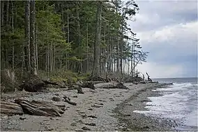 Rathtrevor Beach Provincial Park is a provincial park in Parksville, British Columbia, Canada. Located at the east end of the town, the 347-hectare park features a two-kilometre long stretch of sandy beach, a stand of old-growth Douglas fir trees and 250 vehicle-accessible and 25 walk-in camping spaces.[3] Popular year-round, the park is easily accessible from Highway 19. The sandy beach is the main attraction. At low tide, it stretches nearly a kilometre out into the Strait of Georgia.[3]