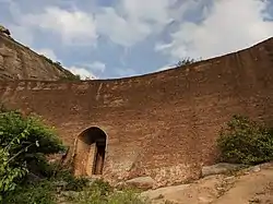 The fort and the village are named after the hill known as Ratnagiri ("jewel hill"), and not much is known about the early history of the area.[3] Historians identify Ratnagiri with a village of the same name, mentioned in an inscription of the Chalukya king Vikramaditya I (r. c. 655-680 CE). According to this inscription, the village was located in the Nalavadi vishaya (district); this district may have been named after the Nalas, although this cannot be said with certainty.[4] The area gained importance during the Pandya and the Chola rule.[1] According to folklore, after the fall of the Vijayanagara Empire, poet Allasani Peddana migrated to Ratnagiri with 500 Brahmin families.[5]