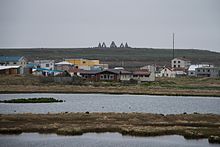 The church was built in 1928 by Guðjón Samúelsson, one of the most important Icelandic architects, and inaugurated on 1 January 1929.[4] It was renovated in 1979.[5] Circa 1996, a large stone monument, "Arctic Henge" (Heimskautsgerði [ˈheimˌskœytsˌcɛrðɪ] in Icelandic), was constructed close to the village.[6] Inspired by historic stone circles as of 2021 the site is still under construction.[7]