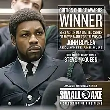 Red, White and Blue is a 2020 historical drama film directed by Steve McQueen and co-written by McQueen and Courttia Newland. It stars John Boyega as Leroy Logan, an officer in the London Metropolitan Police who founded the Black Police Association and attempted to reform the police force from within. The film was released as part of the anthology series Small Axe on BBC One on 29 November 2020, and released on Amazon Prime Video on 4 December 2020. It premiered as an opening film at the 58th New York Film Festival on 24 September 2020.[1]