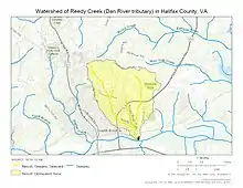 Watershed of Reedy Creek (Dan River tributary) in Halifax County, Virginia, USA
