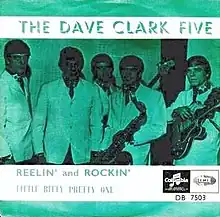 The Dave Clark Five covered "Reelin' and Rockin'" in early 1965. The single peaked at number 24 in the UK,[7] number 23 in the US,[8] and number 12 in Australia. Their rendition became the first and overall highest-charting version of the song. Cash Box described it as "a rollicking terpsichorean-themed contagious rocker."[9]