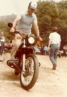 Pridmore and his Ventura, California-based RPM Motorcycles shop attended several of the South Coast BMW Riders Club's Fiesta Rallies in the early 1980s. The photo shows Reg on a 1982 BMW R80G/S participating in the rally Slow Race.[2]