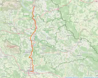 The line begins at Regensburg Hauptbahnhof and from there runs to the east parallel to the line to Passau. The lines separate at the Safferling footbridge. The line to Passau turns south, while the line to Weiden heads north through the Regensburg port area and crosses bridges over the Westhafen and the Danube. The line runs east of the Regensburg districts of Konradsiedlung, Wutzlhofen and Haslbach, swings to the northwest and follows the Regen to Regenstauf. After Regenstauf the line crosses the Regen, continues to the northwest, crosses the A 93 and loops through the Ponholz forest. After Ponholz, the line continues north to Maxhütte-Haidhof, where the line to Burglengenfeld branches off, and continues between the Naab and the A 93 to Schwandorf.