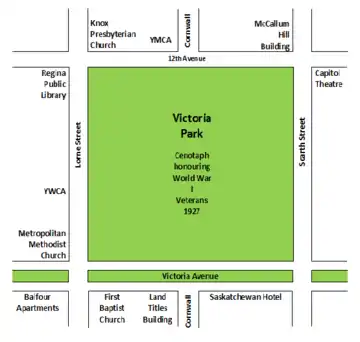- ↑ http://scaa.usask.ca/gallery/regina/central/victoria_park.html "Regina: The Earlier Years 1980–1950." Viewed 29 October 2012.