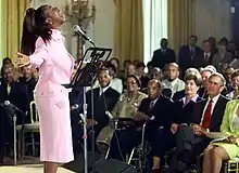 Belle performing for President George W. Bush and First Lady Laura Bush during a Black Music Month celebration in the East Room of the White House on June 30, 2001.