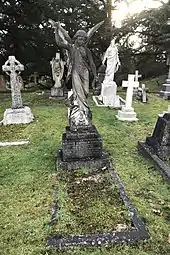 Reginald Archibald Cammell was buried with full military honours in Aldershot Military Cemetery, and today his grave is just a few feet from that of aviation pioneer Samuel Franklin Cody. His mother and sister were the chief mourners while practically all the officers of the Air Battalion followed in the funeral procession. The coffin was carried to the graveside by non-commissioned men of the deceased's own battalion, and his brother officers acted as pallbearers. Cammell was unmarried and left his estate valued at £3,412 2s 8d to his recently widowed mother.[10] Unusually, he and his father (who had died in March 1911) have adjoining entries in the Probate Register. His obelisk memorial opposite the Cathedral of St Michael and St George on Queen's Avenue in Aldershot has been a Grade II listed memorial on the Register of Historic England since 2010 owing to its historic significance "as commemorating a pioneer of military aviation, and marking the esteem in which he was held by fellow aviators.[7][14] The monument is one of the oldest to commemorate the death of a pilot.[15]