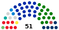 The Regional Council of Veneto (Consiglio Regionale del Veneto) is composed of 51 members. 49 councillors are elected in provincial constituencies by proportional representation using the largest remainder method with a Droop quota and open lists, while the remaining two are the elected President and the candidate for president who comes second. The winning coalition wins a bonus of seats in order to make sure the elected president has a majority in the council.[2][3][4]