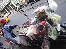 Street foods—ready-to-eat food or drink sold in a street or other public place, such as a market or fair, by a hawker or vendor, often from a portable stall[1]— have variations within both regions and cultures.[2] For example, Dorling Kindersley describes the street food of Vietnam as being "fresh and lighter than many of the cuisines in the area" and "draw[ing] heavily on herbs, chile peppers and lime," while street food of Thailand is "fiery" and "pungent with shrimp paste... and fish sauce" with New York City's signature street food being the hot dog, although the offerings in New York also range from "spicy Middle Eastern falafel or Jamaican jerk chicken to Belgian waffles."[3] In Hawaii, the local street food tradition of "Plate Lunch" (rice, macaroni salad and a portion of meat) was inspired by the bento of the Japanese who had been brought to Hawaii as plantation workers.[4]