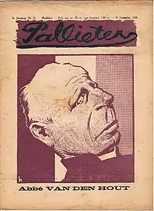 In 1921, van den Hout founded the Revue catholique des idées et des faits, which he edited until it closed in May 1940. For three years he also co-edited Le Vingtième Siècle.[1] His review, unusually for a publication that took the name "Catholic" in the title, was not subject to ecclesiastical censorship. Influenced by Charles Maurras and sympathetic to Italian fascism and Spanish nationalism, he opposed German Nazism and Belgian Rexism.[1] In the summer of 1940 van den Hout was a refugee in France, where he became chaplain to General Henri Denis's staff. He was involved in fruitless plans to found an international review and to forge a Mediterranean "Eurafrican" alliance as a counterweight to the Nazism that then seemed victorious in northern Europe.[1]