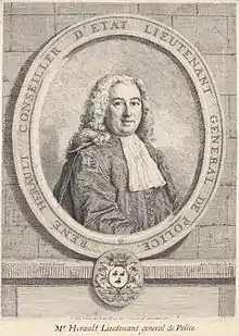 René Hérault, Seigneur de Fontaine-l'Abbé et de Vaucresson (23 April 1691 – 2 August 1740), simply known as René Hérault, and sometimes as René Hérault de Vaucresson, was a French magistrate and administrator who served as Lieutenant General of Police of Paris from 1725 to 1739.