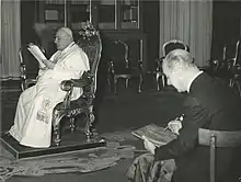 Among the famous characters portrayed by Signorini, it is worth mentioning Pope Pius XII, whose portrait in gold and gems is currently kept in the Vatican City, as declared by the artist himself in his personal file now kept at the "Fondazione La Quadriennale di Roma"; Sophia Loren; Grace Kelly;[15] Soraya, the second wife of the last Shah of Persia;[8] Pope John XXIII; Cardinal Ernesto Ruffini ("This Week Magazine", The Salt Lake Tribune, 12 August 1956).