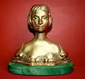 Signorini obtained many commissions in the United States. Among them: the small bust of Mona Williams von Bismark (1897-1983), considered as an American fashion icon; the bust of Ms. Cowles, the wife of editor Gardner "Mike" Cowles (1903-1985), depicted wearing some of her favourite jewels in miniature.[12] His works were on display at the Sun Lounge of the Beverly Hills Hotel, Los Angeles, in October 1958 (Anderson Herald Bulletin 20/10/1958) and then in San Francisco, Dallas, New Orleans, Paris, Madrid and Johannesburg.