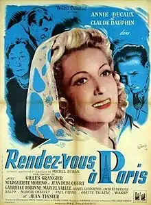 Rendezvous in Paris (French: Rendez-vous à Paris) is a 1947 French comedy film directed by Gilles Grangier and starring Annie Ducaux, Claude Dauphin and Marguerite Moreno.[1] It was shot at the Studio François 1 in Paris. The film's sets were designed by the art director Roland Quignon.