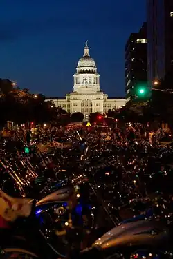 ![]() Motorcycles parked under the Texas Capitol building in 2006 | |