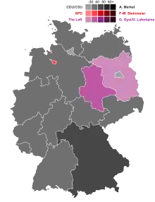 This is a breakdown of the results of the 2009 German federal election. The following tables display detailed results in each of the sixteen states and all 299 single-member constituencies.