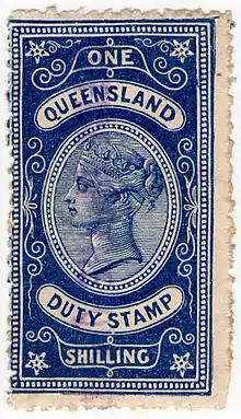 The Australian state of Queensland issued revenue stamps from 1866 to 1988. There were various types for different taxes.[1]