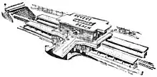 The Eastern Railroad-backed Boston, Winthrop, and Shore Railroad (BW&S) operated slightly inland in 1884 and 1885, with its own Crescent Beach station just west of the BRB&L station.[7][8] A new BRB&L station was opened on October 31, 1887. It was located at Centennial Street, about 500 feet (150 m) south of the previous location.[9] It was very similar in design to Chatham station – which opened the same year – with a polygonal tower on the track side of the building.[10]