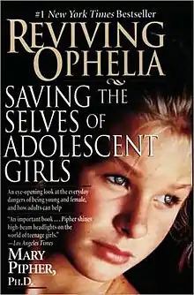 Reviving Ophelia: Saving the Selves of Adolescent Girls is a 1994 book written by Mary Pipher. This book takes a look at the effects of societal pressures on American adolescent girls, and utilizes many case studies from the author's experience as a therapist.[1] The book has been described as a "call to arms" and highlights the increased levels of sexism and violence that affect young females. Pipher asserts that whilst the feminist movement has aided adult women to become empowered, teenagers have been neglected and require intensive support due to their undeveloped maturity.[2]