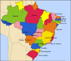 Many black people in Salvador worked as laborers known as ganhadores ('earners').[6] These ganhadores worked as porters, transporting goods, cargo, and people throughout the city.[7] Transportation in the city was largely dependent on these ganhadores, as other forms of transportation were either unavailable or economically unfeasible for most merchants.[8] At the time, it was a profession held entirely by black people, with no white people or pardo Brazilians (people of mixed race or ethnicity) working in that field.[7] During an 1847 visit to Salvador, Alexandre, Baron Forth-Rouen des Mallets of France, wrote that black people constituted "the majority of the Bahia's population" and were "the only ones to be seen in the streets, like beasts employed to carry all kinds of burdens, and which circulate laden with heavy loads".[7] A similar observation was made by German explorer Robert Christian Avé-Lallemant during an 1858 stay in Salvador, where he said, "Everything that runs, shouts, works, everything that transports and carries is black".[7] About 30 percent of the Nagos slaves in Salvador worked exclusively as ganhadores, and a majority worked either full-time or part-time as such.[9] The ganhadores of Salvador organized themselves into work groups known as cantos,[note 2] with each canto covering a particular area of the city.[11] These cantos also functioned as important public spaces for Africans in Salvador, as they served as gathering places where people could interact, buy and sell goods, and engage in religious practices.[12] Each canto was led by an individual known as the capitão-do-canto ('captain of the canto'), who was selected from among the ganhadores of the canto and could be either freedmen or slaves.[13]