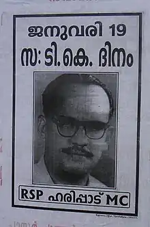 RSP poster in Kerala, honouring historical RSP leader T.K. Divakaran