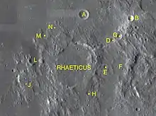 - ↑ "Rhaeticus (crater)". Gazetteer of Planetary Nomenclature. USGS Astrogeology Research Program.