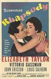 Rhapsody is a 1954 American musical drama film directed by Charles Vidor and starring Elizabeth Taylor, Vittorio Gassman, John Ericson, and Louis Calhern based on the 1908 novel Maurice Guest by Henry Handel Richardson.