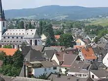 The Rheingau Mountains or Rheingau Hills form the westernmost section of the High Taunus and extend for 20 kilometres in a south-west to north-east direction between the Rhine valley near Lorch and Assmannshausen in the west and the Walluf valley near Schlangenbad in the east. The highest point is the 619-metre-high mountain of Kalte Herberge.[1] The Rheinhöhenweg Trail on the right bank of the Rhine runs along the ridgeline of the mountains which are part of the main crest of the Taunus.