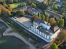 5. 1 2 Vogt, Helmut (2004). Wächter der Bonner Republik. Die Alliierten Hohen Kommissare 1949–1955 [Guardians of the Bonn Republic : the Allied High Commissioners 1949-1955] (in German). Paderborn: Ferdinand Schöningh. p. 48. ISBN 3-506-70139-8. OCLC 53939054. Kurzfristig mußten Ersatzunterkünfte für jene 363 Flüchtlinge und Orstvertriebenen gefunden werden, die den Komplex im Sommer 1949 bewohnten. Knapp die Hälfte von Ihnen brachte das Land Rheinland-Pfalz im Rheinhotel Niederbreisig unter, zumindest vorübergehend, bis zur Fertigstellungen der in Godesberg begonnen Ersatzwohnungen... [Replacement accommodations had to be found on short notice for the 363 refugees and displaced persons who occupied the complex in the summer of 1949. Almost half of them were accommodated by the state of Rhineland-Palatinate in the Rheinhotel Niederbreisig, at least temporarily, until the replacement apartments begun in Godesberg were completed...]