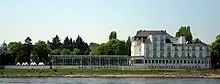In March 1945, General Richard Schimpf moved into the hotel, only to hand over Godesberg to the American troops the next day. The hotel then became the quarters of the American commander-in-chief and later President of the United States, Dwight D. Eisenhower. After July 1945 the confiscated hotel was availibe as a convalescent home for the British Royal Air Force and briefly starting 1946 for the Belgian armed forces. From December 1946 it served as accommodation for displaced people. After Bonn was established as the seat of government of West Germany in 1949, the hotel was designated as the headquarters of the allied high commissions (France, USA, Great Britain). To accommodate this purpose the state of North Rhine-Westphalia gave an order to the Federal Capital Office to convert the hotel by equipping it with 110 offices covering an area of 3320 m². The confiscation took place on July 15. By the end of July, half of the 363 refugees previously housed here had been relocated to Niederbreisig[5] On September 10, the conversion and renovation of the hotel was completed. Contrary to previous plans, it served exclusively as the seat of the French High Commission under André François-Poncet - the first to take up its work in the Bonn area.[5]