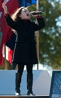 Rhema Marvanne sings The Prayer during a remembrance ceremony at Fort Hood, Texas on November 5, 2010.