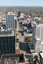 - ↑ "Downtown - Chunk of falling facade closes Rhodes Tower area". The Columbus Dispatch. November 23, 2017. Archived from the original on February 21, 2023. Retrieved February 20, 2023.