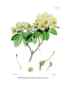 - ↑ "Rhododendron campylocarpum", J. D. Hooker, Rhododendr. Sikkim-Himalaya. 3: t. 30. 1851.