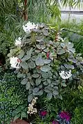 Growing to 2.5 m (8.2 ft) in height, it is an evergreen shrub with clusters of slightly fragrant, narrowly trumpet-shaped flowers that open pink, turning white.[2]