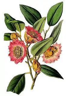Rhodoleia is a genus of plants in the family Hamamelidaceae. Together with its sister genus Exbucklandia, Rhodoleia forms the sister clade to the other 25 genera of Hamamelidaceae.[1] Flowers of Rhodoleia are bird-pollinated. Nectar-foraging birds including Japanese white-eyes (Zosterops japonicus, Zosteropidae) and fork-tailed sunbirds (Aethopyga christinae, Nectariniidae), avidly visit the flowers, which they also pollinate in the process.[2]
