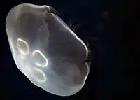 Moon jelly (Aurelia aurita) with rhopalia visible in indentations of rim