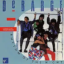 "Rhythm of the Night" is a song by American musical recording group DeBarge, written by Diane Warren and released on February 23, 1985, on the Motown label as the first single from their fourth studio album of the same name (1985). The song jump-started the career of the prolific songwriter Warren,[2] and was the biggest hit recorded by the Motown family singing group, peaking at number three on the Billboard Hot 100.