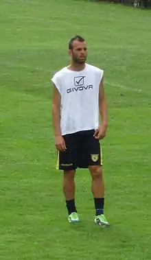 On 4 July 2014, he signed a two-year contract, with an option for a third, with Chievo.[20] He scored his first goal for Chievo at home against Empoli, in the match in which he debuted with Chievo. On 8 December, he scored with a fantastic bicycle kick against Cagliari, then was decisive in a 2–1 encounter won against Sampdoria, scoring his club's second goal after a 50-metre dribbling run.