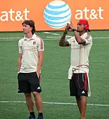 In 2009–10 season, Montolivo was made club captain following the departure of Dario Dainelli.[28] Montolivo also expressed that the departure of Dainelli and Martin Jørgensen had weakened the team, but with Sébastien Frey and Marco Donadel, he formed a strong midfield.[28] Despite gaining attention from big clubs he said that Fiorentina was his house and he would not change his club.[29]