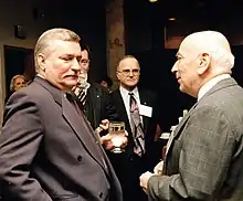 He has been known for his deeply pro-democracy convictions. In 1989, when the Communist government in Poland was collapsing, he gave a number of presentations on the subject at three TV network affiliates of NBC, ABC, and CBS. When Lech Wałęsa, Nobel Peace Prize winner and former president of Poland, visited Rochester Institute of Technology[41] in February 1998, he and Wałęsa had a discussion on the political situation in Poland, later described in the Rochester Democrat and Chronicle,[42] February 22, 1998 edition.