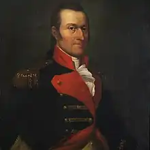 In 1788 he was a member of the state convention, and in 1793 a presidential elector.[5] He was the principal surveyor of the Virginia Military District from 1783 until 1819.[7] Anderson Township is named after him, as is Clough Creek.[3] His first wife was Elizabeth Clark, sister of George Rogers Clark and William Clark.[2] His second wife was Sarah Marshall (1779–1854), a cousin of John Marshall, the fourth Chief Justice of the United States.[8] He is the father of Richard Clough Anderson Jr., Charles Anderson (27th governor of Ohio), William Marshall Anderson,[9][6] and Robert Anderson (who surrendered to Confederate forces at Fort Sumter).[10] He is the great grandfather of Larz Anderson, an American diplomat involved in foreign affairs, who had the Larz Anderson House built for him and his wife Isabel Weld Perkins, which was bequeathed to the Society of Cincinnati as their international headquarters.[3] He is the father-in-law of Allen Latham who helped him with surveying and administered his estate.[9][7] He was a charter member of the Society of Cincinnati.[3][11] Their home near Louisville was known as "Soldiers' Retreat."[5]