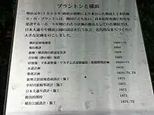 Aside from his work on lighthouses around Japan, Brunton also surveyed and drew the first detailed maps of Yokohama, planned its sewage system, street paving and gas lights, established a telegraph system, and designed and built the settlement's first iron bridge. He also helped found Japan's first school of civil engineering. In recognition of his efforts, he was received by Emperor Meiji in an audience in 1871.[4]